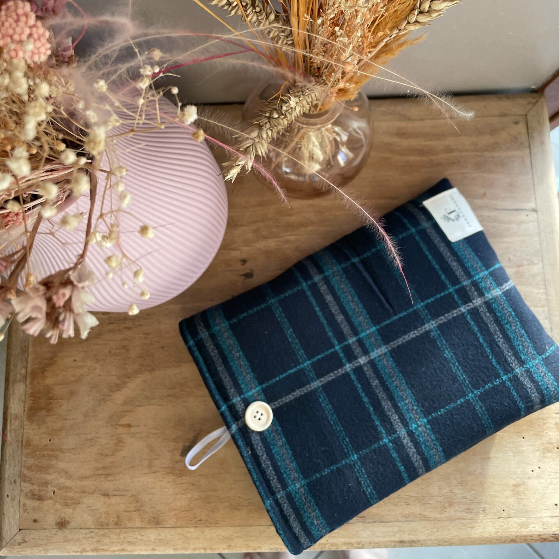 Cette pochette à livre upcyclée protège efficacement vos ouvrages des frottements, des plis et des petites taches du quotidien. Légère et souple, elle accompagne vos lectures à la maison comme en déplacement.
