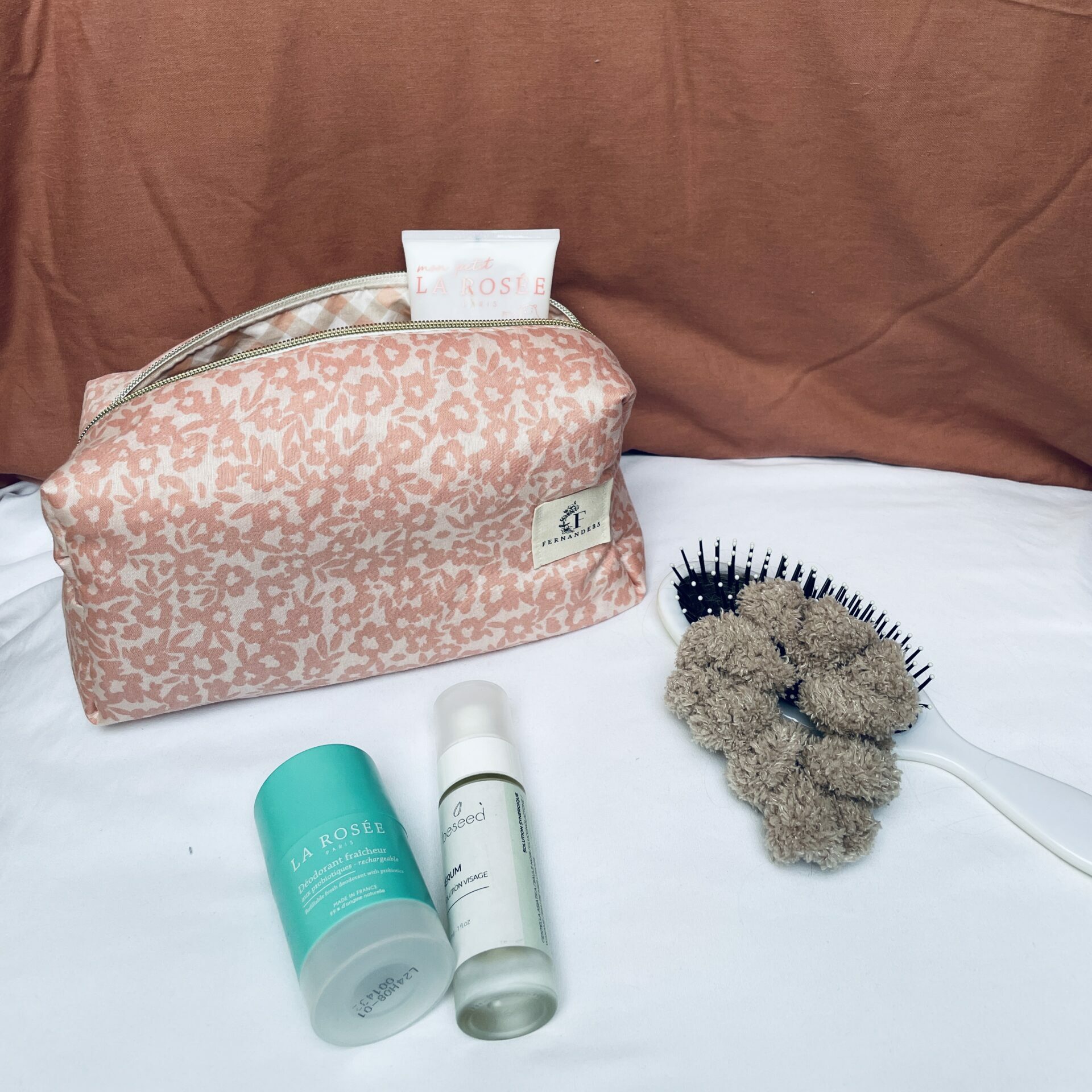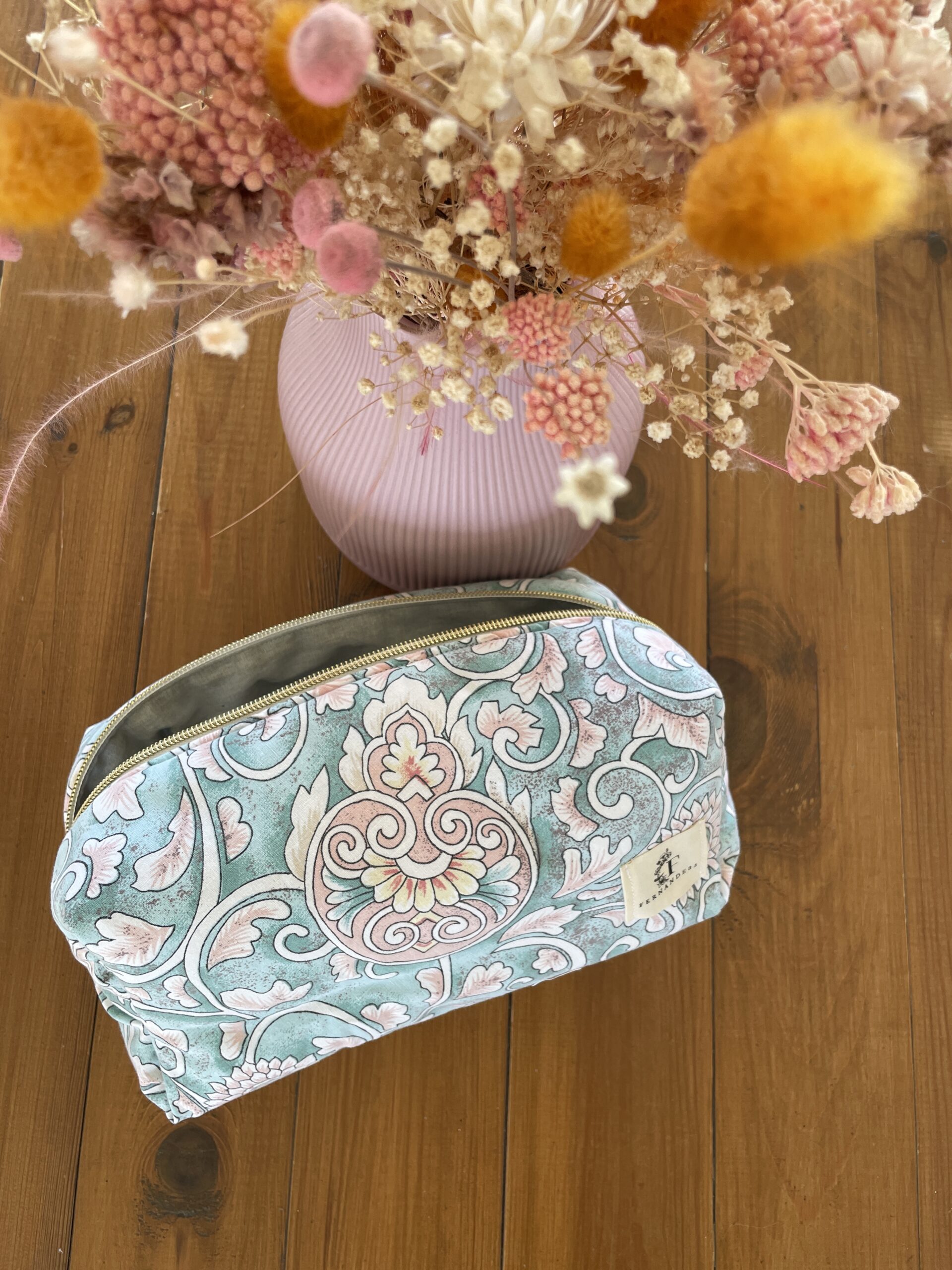 Cette trousse maquillage upcycling s’utilise aussi bien à la maison qu’en déplacement. Elle se glisse facilement dans un sac à main, un sac de voyage ou une valise. Ainsi, vous gardez toujours vos indispensables beauté à portée de main. Chaque trousse est cousue avec soin dans mon atelier. Je sélectionne les tissus et assemble chaque pièce pour garantir une finition propre et durable. Vous profitez donc d’un accessoire pratique, esthétique et conçu pour durer.